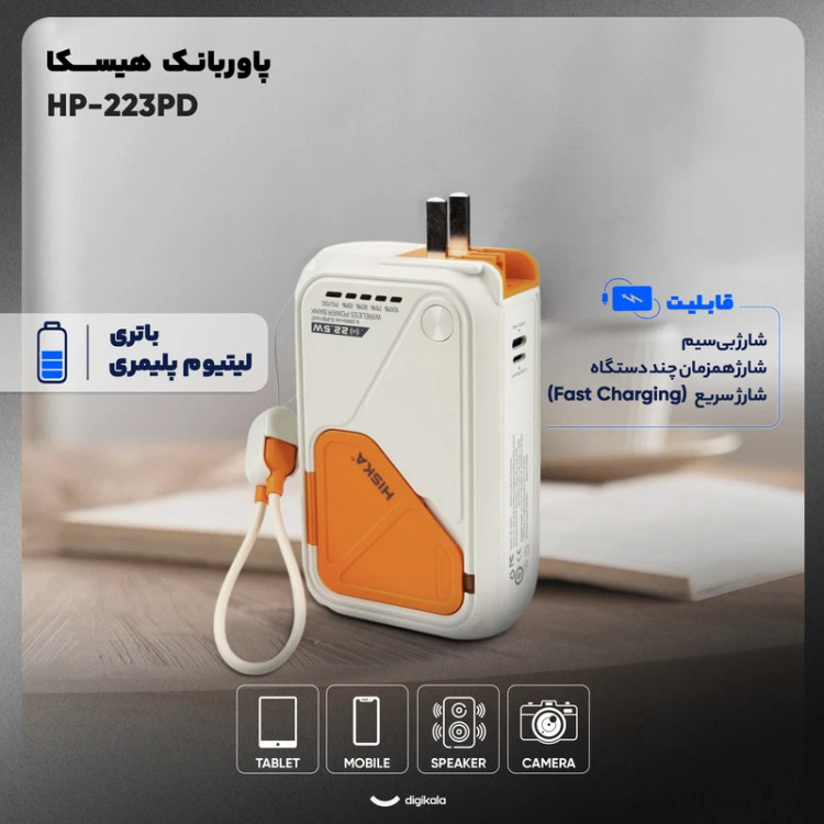 پاوربانک HP-223PD از توان خروجی 22.5 وات پشتیبانی میکند که امکان شارژ سریع دستگاهها را فراهم میآورد.