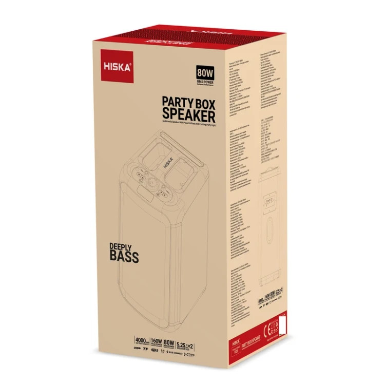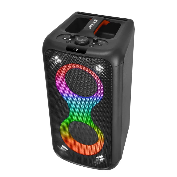 صدایی شفاف، بلند و پرقدرت را ارائه میدهد. ترکیب دو بلندگوی ۵.۲۵ اینچی با بیس قوی و دو تیوتر ۲ اینچی، پوشش صوتی کامل و باکیفیتی را فراهم میکند. بدنه چوبی همراه با نمای جلویی از پلاستیک مقاوم و توری فلزی، ظاهری حرفهای و مستحکم به دستگاه داده است. این اسپیکر از ورودیهای متنوعی مانند USB، بلوتوث، AUX، رادیو FM، و کنترل از راه دور پشتیبانی میکند و همچنین دارای نمایشگر دیجیتال و قابلیت TWS برای اتصال بیسیم همزمان به اسپیکر دیگر است. باتری قدرتمند ۴۰۰۰ میلیآمپری آن با ولتاژ ۱۱.۱ ولت، استفاده بلندمدت و بدون نیاز به برق را ممکن میسازد. افکت صدای EQ و کیفیت صدای Mega-BASS تجربهای جذاب و غنی از موسیقی را فراهم میکنند. ورودی میکروفن و گیتار این امکان را فراهم میسازد تا از این دستگاه بهعنوان آمپلیفایر نیز استفاده شود. همچنین چراغهای رنگی پویا و نورهای استروبی که با ریتم موسیقی هماهنگ میرقصند، جلوهای چشمگیر به مهمانیهای شما میبخشند.
