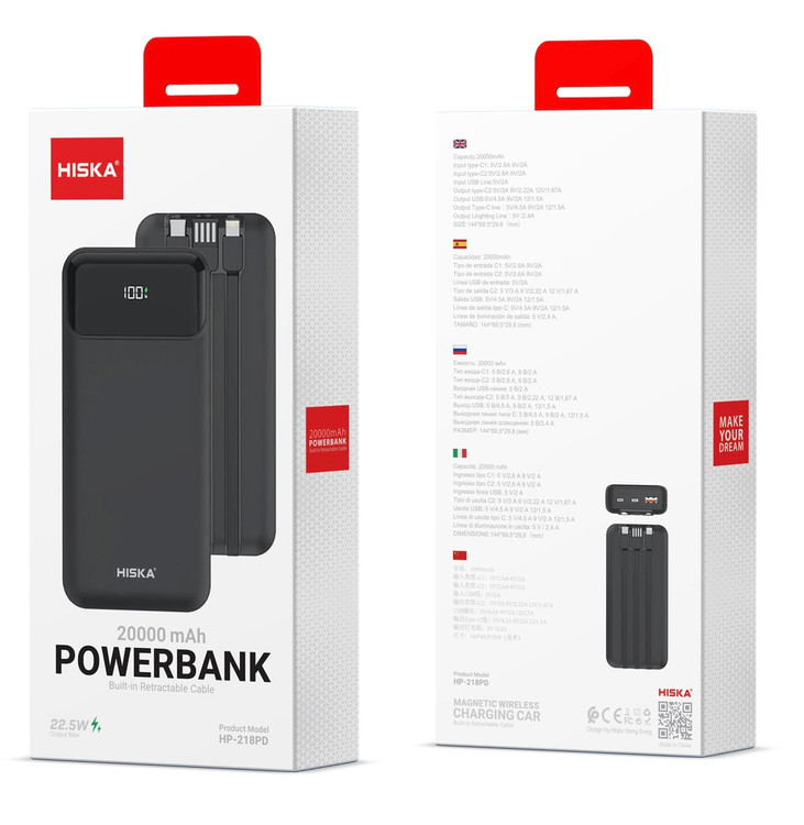 پاوربانک مغناطیسی و بیسیم هیسکا مدل HP-218PD یک محصول با طراحی مدرن و کارایی بالا است که با ظرفیت 20000 میلیآمپر ساعت، نیاز کاربران به انرژی در طول روز را بهخوبی تأمین میکند. این پاوربانک به لطف طراحی جمعوجور و سبک خود، برای استفاده روزانه و سفر بسیار مناسب است و بهراحتی در کیف یا جیب قرار میگیرد. پاوربانک HP-218PD از سه ورودی متنوع شامل Type-C1، Type-C2 و USB بهره میبرد که با ولتاژ و جریانهای مختلف، امکان شارژ سریع و کارآمد دستگاههای مختلف را فراهم میکند. همچنین، خروجیهای Type-C و USB این پاوربانک با توان خروجی تا 12 ولت و 1.67 آمپر، شارژ سریع دستگاههایی مانند گوشیهای هوشمند، تبلتها و سایر گجتهای الکترونیکی را تضمین میکنند. یکی از ویژگیهای برجسته این پاوربانک، قابلیت شارژ مغناطیسی و بیسیم است که به کاربران اجازه میدهد دستگاههای مجهز به فناوری شارژ بیسیم را بدون نیاز به کابل شارژ کنند. این ویژگی، بهویژه در شرایطی که کابل همراه ندارید، بسیار کاربردی است. بدنه این پاوربانک از مواد باکیفیت و مقاوم ساخته شده است و ابعاد مناسب 144×69.5×29.8 میلیمتر آن، حمل و نگهداری آسان را تضمین میکند. همچنین، وجود خطوط خروجی نور با توان 5 ولت و 2 آمپر، این دستگاه را برای استفاده در شرایط خاص مانند مواقع اضطراری یا محیطهای تاریک به گزینهای ایدهآل تبدیل کرده است. پاوربانک مغناطیسی و بیسیم هیسکا مدل HP-218PD با ظرفیت بالا، قابلیت شارژ سریع، و طراحی زیبا و کاربردی، انتخابی عالی برای تمامی کاربران است که به دنبال ترکیبی از قدرت و نوآوری هستند