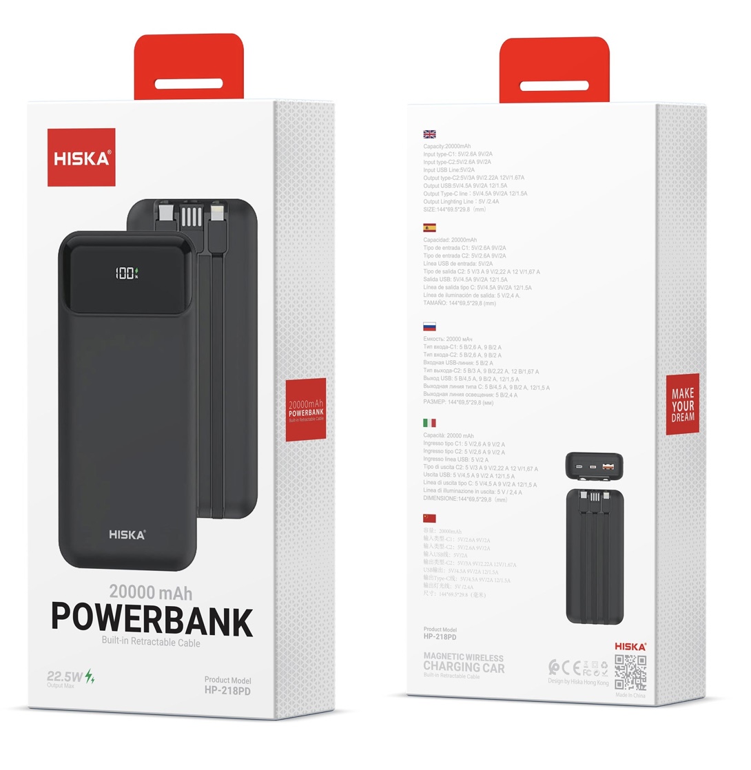پاوربانک مغناطیسی و بیسیم هیسکا مدل HP-218PD یک محصول با طراحی مدرن و کارایی بالا است که با ظرفیت 20000 میلیآمپر ساعت، نیاز کاربران به انرژی در طول روز را بهخوبی تأمین میکند. این پاوربانک به لطف طراحی جمعوجور و سبک خود، برای استفاده روزانه و سفر بسیار مناسب است و بهراحتی در کیف یا جیب قرار میگیرد. پاوربانک HP-218PD از سه ورودی متنوع شامل Type-C1، Type-C2 و USB بهره میبرد که با ولتاژ و جریانهای مختلف، امکان شارژ سریع و کارآمد دستگاههای مختلف را فراهم میکند. همچنین، خروجیهای Type-C و USB این پاوربانک با توان خروجی تا 12 ولت و 1.67 آمپر، شارژ سریع دستگاههایی مانند گوشیهای هوشمند، تبلتها و سایر گجتهای الکترونیکی را تضمین میکنند. یکی از ویژگیهای برجسته این پاوربانک، قابلیت شارژ مغناطیسی و بیسیم است که به کاربران اجازه میدهد دستگاههای مجهز به فناوری شارژ بیسیم را بدون نیاز به کابل شارژ کنند. این ویژگی، بهویژه در شرایطی که کابل همراه ندارید، بسیار کاربردی است. بدنه این پاوربانک از مواد باکیفیت و مقاوم ساخته شده است و ابعاد مناسب 144×69.5×29.8 میلیمتر آن، حمل و نگهداری آسان را تضمین میکند. همچنین، وجود خطوط خروجی نور با توان 5 ولت و 2 آمپر، این دستگاه را برای استفاده در شرایط خاص مانند مواقع اضطراری یا محیطهای تاریک به گزینهای ایدهآل تبدیل کرده است. پاوربانک مغناطیسی و بیسیم هیسکا مدل HP-218PD با ظرفیت بالا، قابلیت شارژ سریع، و طراحی زیبا و کاربردی، انتخابی عالی برای تمامی کاربران است که به دنبال ترکیبی از قدرت و نوآوری هستند